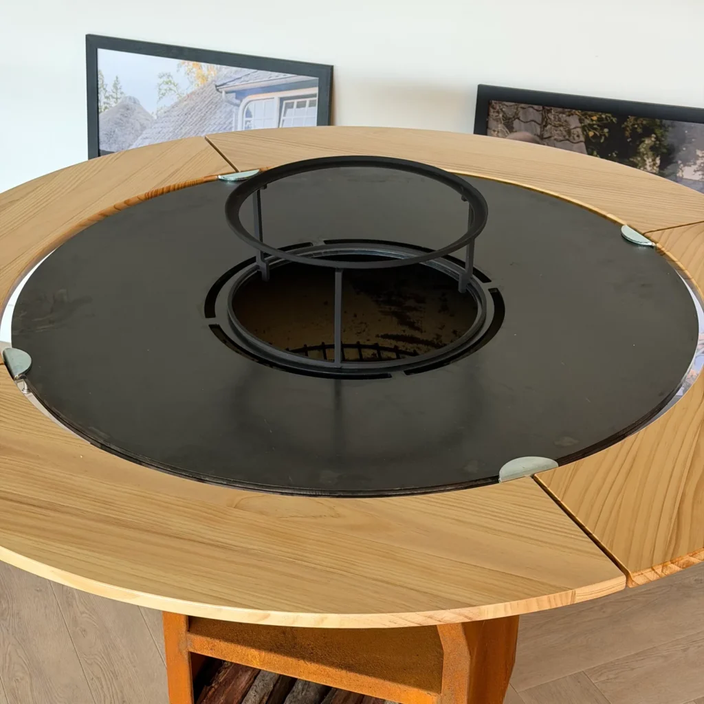 Enorm bakoppervlakte van 100cm diameter met onze Conische dikke stalen bakplaat op de Maestro XXXL Cortenstaal met Handvat