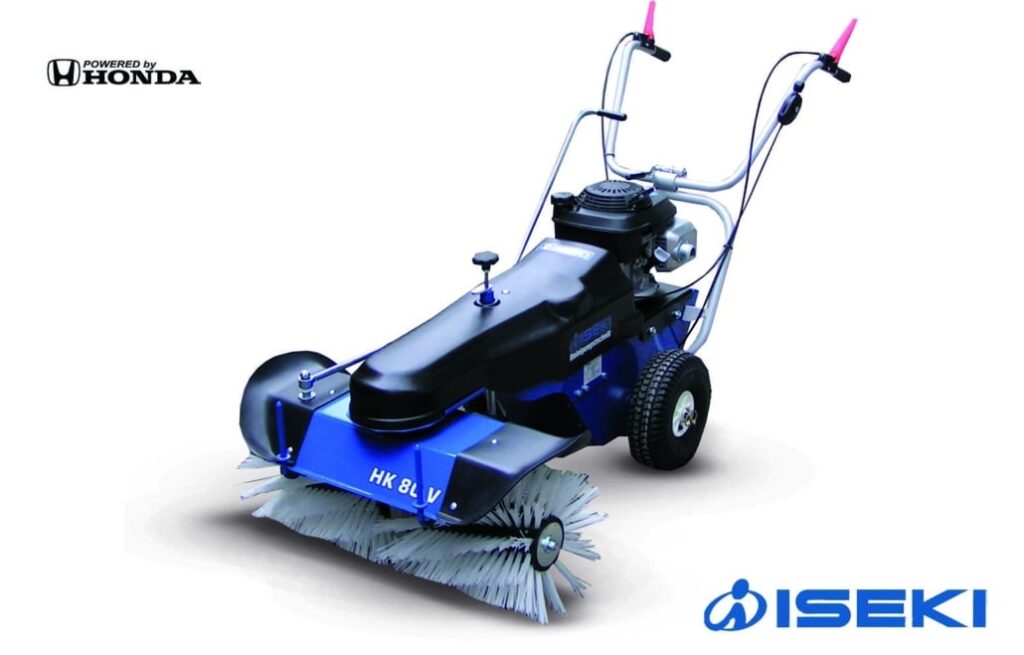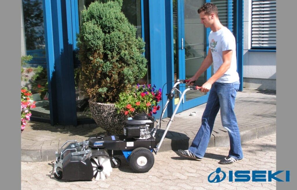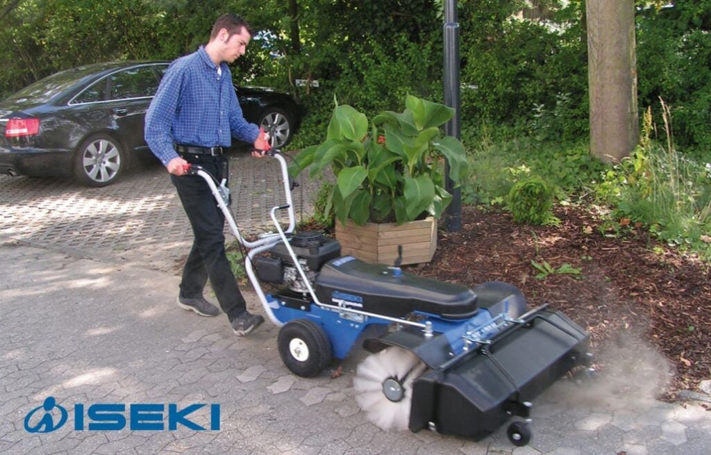 Opritten, parkeerplaatsen, speelpleinen: het ideale werkterrein voor deze krachtige Iseki veegmachines.